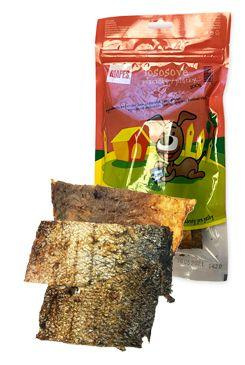 100% přírodní sušená pochoutka SUŠENÁ KŮŽE Z LOSOSA 15cm, 50 gr pro Vašeho pejska - 100% PŘÍRODNÍ PRODUKT BEZ KONZERVANTŮ, DOCHUCOVADEL A BARVIV. Kůže je dobře stravitelná a je vhodná i pro psy s potravinovou alergii. Navíc obsahuje omega-3 a omega-6 mast