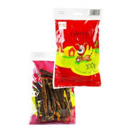 Sušená nativní pochoutka. - 100% přírodní žvýkací pamlsek - přirozená vůně a chuť bez použití konzervantů a chemických úprav - sušeno horkým vzduchem - vyrobeno pouze ze surovin pocházejících z EU Analytické složky: Proteiny 38,5 % Tuk 43,35 % Vlhkost 4,6 % Popel 11,97% Balení: 500g