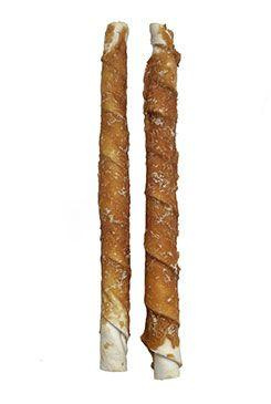 Masová pochoutka pro psy, tyčinka z buvolí kůže s kuřecím masem. Složení: 60,8% kuře, 22% kůže, 4% škrob, 6% glycerin, 5% rost. protein, 2% sorbit, 0,2% sůlAnalytické složky: 55% hrubý protein, 4% hrubý tuk, 6% hrubý popel, 1% hrubá vláknina, 18% vlhkost Zajistěte zvířeti pitnou vodu.