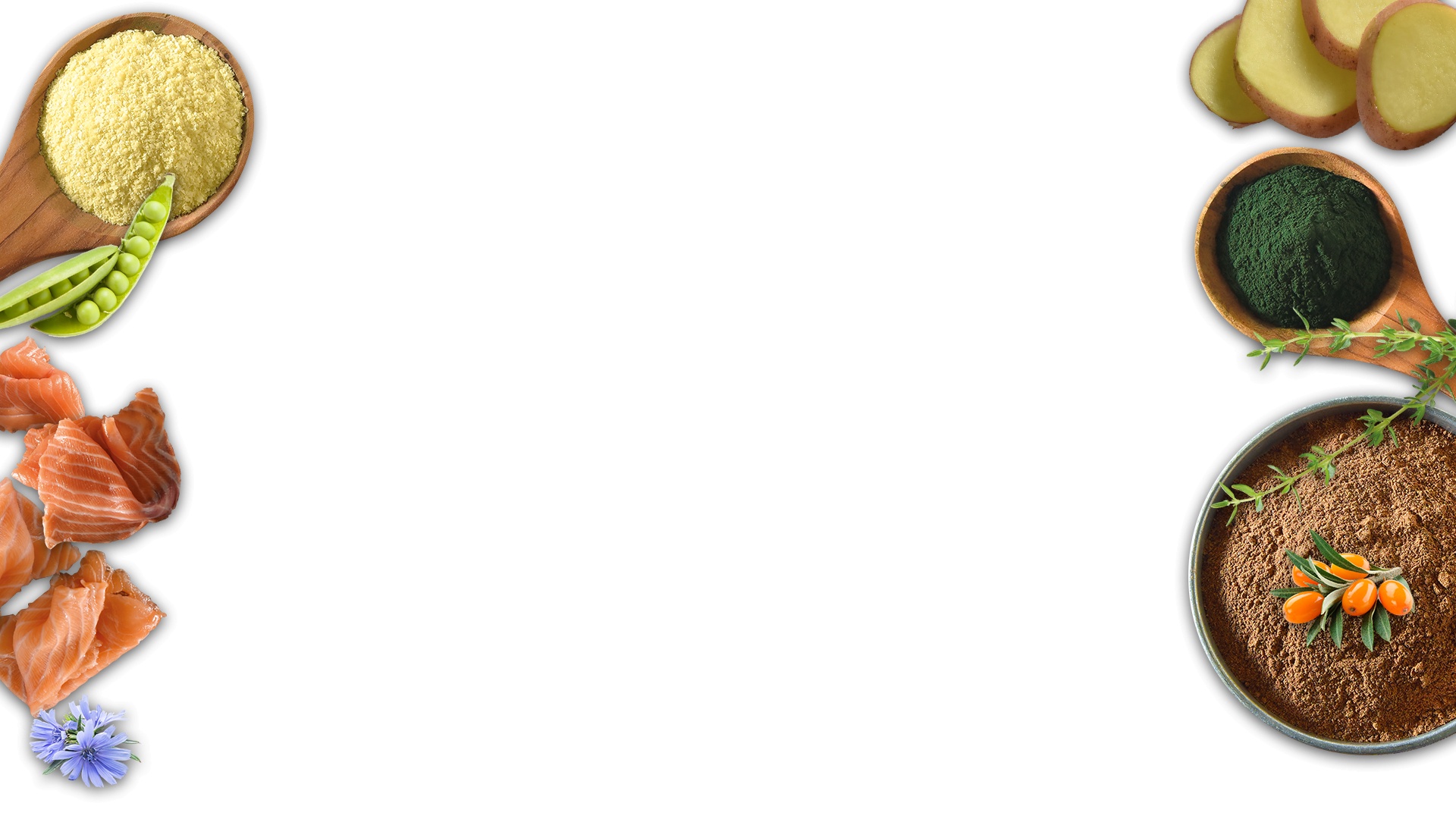 Vykostený losos (25%), zemiakové vločky (18%), sušené bravčové mäso (17%), sušená morka (15%), hrach (12%), hydinový tuk, zemiakový škrob, sušená repná drť (4%), hydrolyzovaná živočíšna bielkovina, kvasnice (3%), vitamíny a minerály, lososový olej (0,5%), psyllium (0,5%), extrakt z yuccy schidigera (0,2%), spirulina (0,2%), ActiveMOS (0,2%), MACROGARD (0,1%), rakytník (0,1%), bylinky (rozmarín, tymián, petržlen, 0,1%), chondroitín sulfát (270 mg/kg), glukosamín sulfát (200 mg/kg).