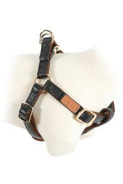 Nastavitelný postroj. Kožená nášivka s logem IMAO. Postroj opatřen pozlaceným plastovým zapínáním a pozlacenými kovovými doplňky. Na přezce je vygravírováno logo ZOLUX.