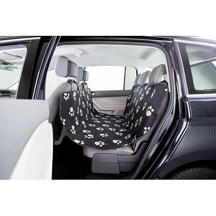 Poťah na auto nylon/flís, čierny s béžovými labkami 1,40 x 1,45 m