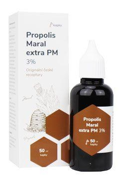 PM Propolis Maral extra 3 % ve formě kapek obsahuje účinné látky z extraktů, které patří do skupin, u kterých byl prokázán významný komplex účinků všeobecně posilujících a tonizujících s antimikrobiálním efektem. Kapky mají charakteristickou vůni po balzámech a mátě peprné a lehce nahořklou chuť po propolisu a maralovém kořeni. Díky směsi aktivních látek se kapky dobře vstřebávají v dutině ústní, ovlivňují metabolické pochody a zvyšují duševní a tělesnou výkonnost a obranyschopnost organizmu.