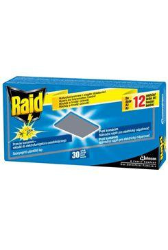 Raid náhradní polštářky do elektrického odpařovače proti létajícímu hmyzu. Raid znamená skutečnou ochranu před komáry, insekticidní přípravek, který poskytuje velmi účinnou a dlouhodobou ochranu proti komárům a drobnému létajícímu hmyzu, účinně odpuzuje létající hmyz, a to i při otevřených oknech a rozsvícených světlech, začíná působit během několika minut, balení obsahuje 30 kusů polštářků, prodej pouze osobám starším 18 let.