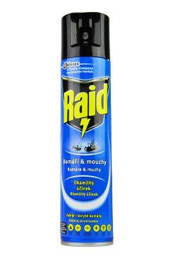 Raid proti komárům a mouchám je insekticidní aerosolový přípravek na vodní bázi se svěží vůní k okamžitému hubení létajícího hmyzu, jako jsou komáři, mouchy, jejich vajíčka, ale i vosy a další. Poskytuje dlouhotrvající ochranu a účinkuje i jako preventivní odpuzující postřik. Má velice příjemnou vůni, přičemž poskytuje přímou ochranu až po dobu 24 hodin a účinkuje i jako preventivní odpuzující postřik.