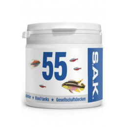 Kompletní krmivo pro akvarijní ryby, základní pro všechny druhy ryb. Vyvážený poměr rostlinné a masové složky zaručuje rychlý růst a zdravý vývoj ryb. Krmivo S.A.K. 55 je obzvlášť vhodné pro tetrovité ryby, např. pro neonky. Krmivo je ve formě granulí.