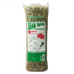 - Vyrobeno ze sena výborné jakosti z luk plné bylin v Železných horách. Složení: Seno luční, jetel luční, pampeliška, jitrocel kopinatý, jetel plazivý, psárka luční, bojínek luční, lipnice luční, sedmikráska obecná a jiné.
