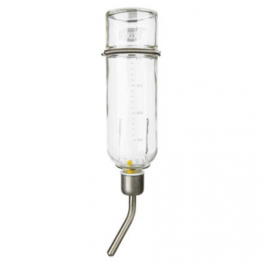 Sklenená napájačka s kovovým pítkom 250 ml, napr. morča, zakrpatený králik