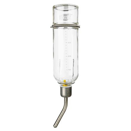 Sklenená napájačka s kovovým pítkom 125 ml, napr. veľký škrečok, činčila