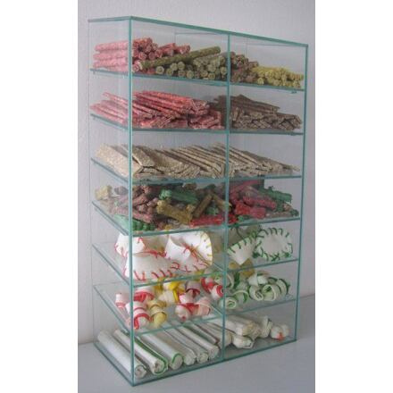 Sklenený zásobník na maškrty - panelák v51/š30/hl15/2x7políc