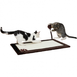 Škrabacia rohož s loptičkou, 70 x 45 cm, na zem/stenu, sisal/plyš, prírodná/tmavohnedá