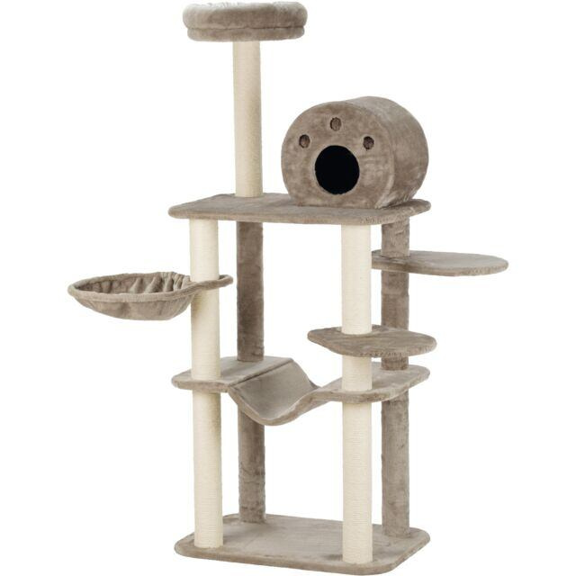 Škrabadlo FABIOLA, 4 stĺpiky, hamaka, jaskyňa, 5 x podesta, 165 cm, sivá