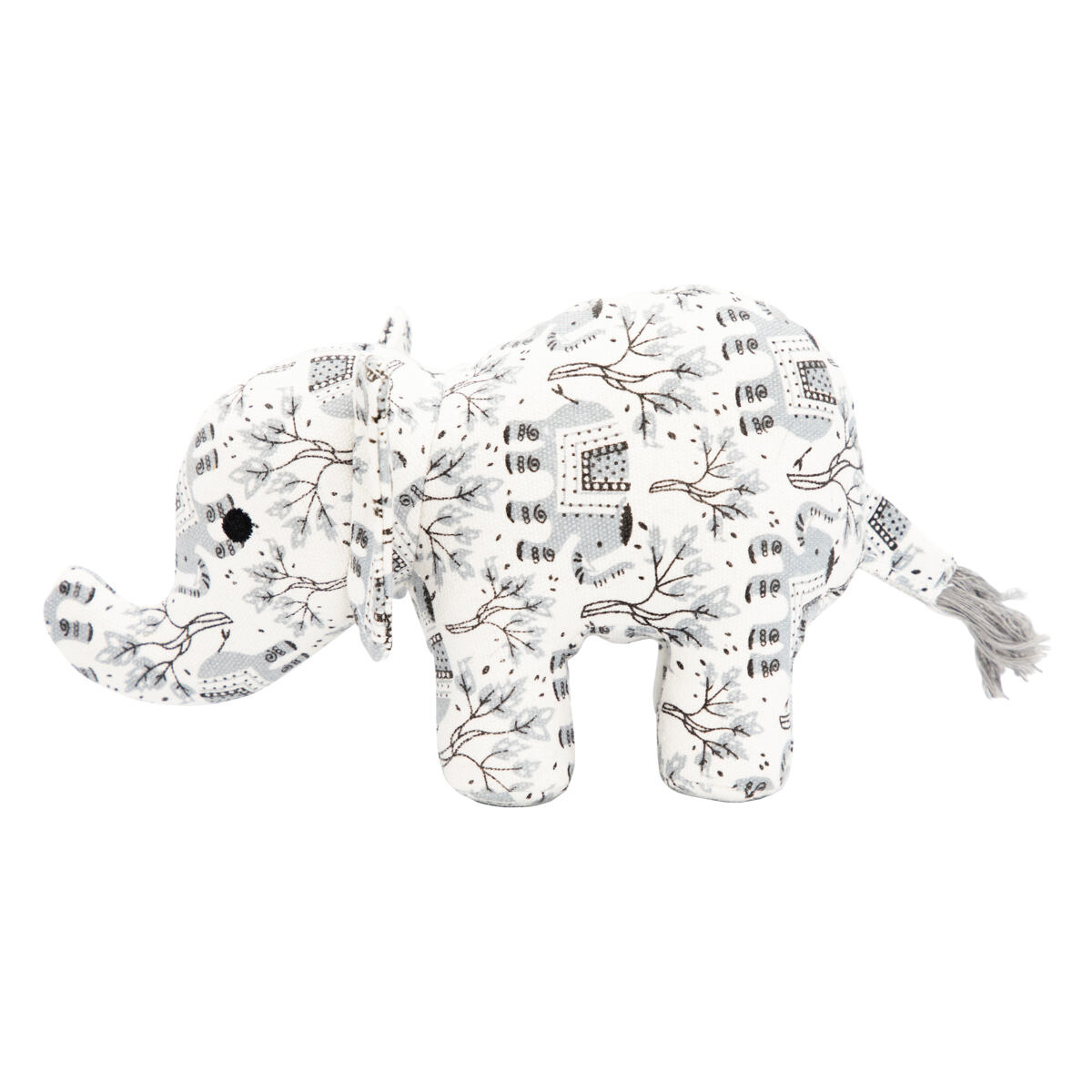 Slon HipHop Dog, 23 cm, látková robustná hračka pre psy, biela s potlačou