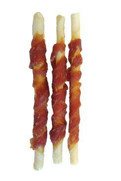 Pamlsek lisovaný z kůže, obalený sušeným kuřecím masem. Kousáním se posílí žvýkací svaly, zároveň vyčistí zuby i dásně. Lze použít jako součást dentální hygieny. Složení: Surová kůže, čerstvé kuřecí maso, kukuřičný škrob, glycerin, sorbitol, chlorid sodnýAnalytické složky: Hrubý protein 30%, Hrubý tuk 5%, Surová vláknina 3%, Surové popel