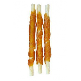 Masová pochoutka pro psy, tyčinka z buvolí kůže s kuřecím masem. Složení: 60,8% kuře, 22% kůže, 4% škrob, 6% glycerin, 5% rost. protein, 2% sorbit, 0,2% sůlAnalytické složky: 55% hrubý protein, 4% hrubý tuk, 6% hrubý popel, 1% hrubá vláknina, 18% vlhkost Zajistěte zvířeti pitnou vodu.