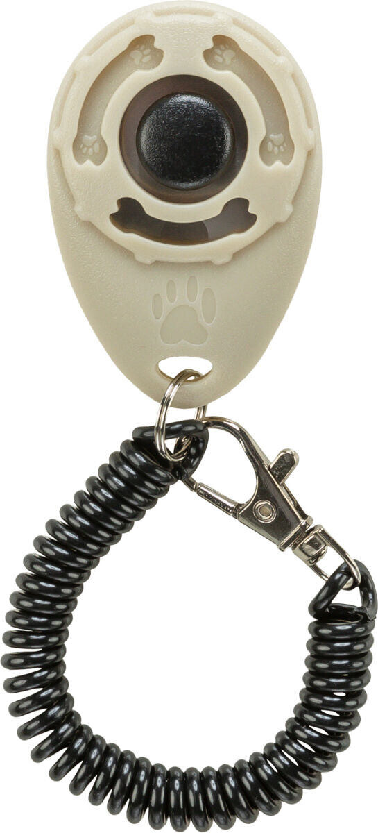 - pružné spirálové lanko s karabinou pro zavěšení klikru na zápěstí či k pásku