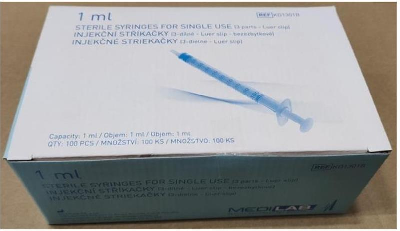 Striekačka Medilab 3-dielna jednoraz. 1 ml, 100 ks