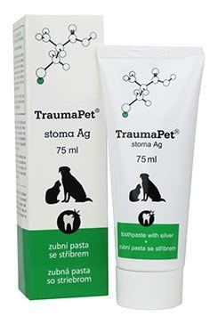 TraumaPet stoma Ag je veterinární přípravek pro čištění zubů s obsahem nanostříbra. Má výborné abrazivní účinky pro odstranění plaku a jemnou masovou příchuť, která učiní z čištění zubů příjemný zážitek. Dlouholeté výzkumy a konkrétní aplikace prokázaly antimikrobní a protizánětlivé účinky stříbra. Prostředek nevykazuje toxické účinky.
