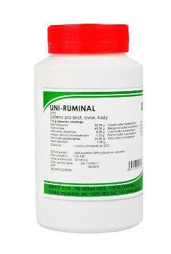 UNI-RUMINAL plv. je schválený veterinární přípravek, je to podpůrný a sílící prostředek pro přežvýkavce. Obsah a vzájemné poměry uvedených složek jsou významné pro vytvoření optimálního prostředí pro pomnožení mikroflóry a mikrofauny v bachoru, dále pro správnou motoriku předžaludků, pro zajištění potřeby a produkci vitamínů B. Přípravek přispívá k úpravě poruch energetického metabolismu a zajišťuje obnovu užitkových schopností zvířete.