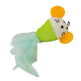 HipHop Cat tkaná ušatá Myška s peřím je kvalitní hračkou pro kočky. Peříčko místo ocásku láká ke hře.