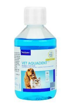 VET AQUADENT je osvěžující, ochucený roztok k potlačení zápachu z tlamy, určený pro zubní a ústní hygienu psů a koček
