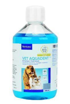 VET AQUADENT je osvěžující, ochucený roztok k potlačení zápachu z tlamy, určený pro zubní a ústní hygienu psů a koček
