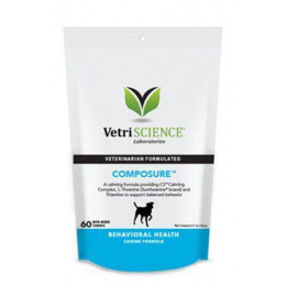 Thiamin pomáhá zvládat stres a snižuje podrážděnost. Bylo prokázáno, že Thiamin (vitamin B1) prostřednictvím centrálního nervového systému napomáhá uklidnit úzkosti u zvířat. Nedostatek thiaminu může způsobit mentální zmatek, svalovou slabost, svalové křeče, nervozitu a ztrátu hmotnosti a chuti k jídlu v průběhu stresu.Composure™ neobsahuje žádné rostlinné složky (Kava ??Kava??, kozlík lékařský, třezalka tečkovaná, atd.), nebo L-tryptofan. Jeho složky nezpůsobují závislost, ospalost nebo zhoršené motorické dovednosti.