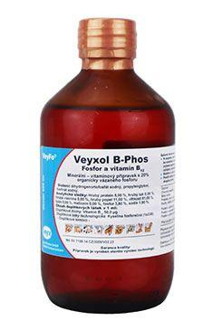 Emulze na minerální bázi obsahující fosfor a vitamín B12. Veyxol B-Phos 100ml z kategorie Vitamíny pro hospodářská zvířata Veyx . Emulze na minerální bázi obsahující fosfor a vitamín B12. Doplnění výživové potřeby organismu. Podává se v období zvýšené zátěže (porod, transport, teplotní výkyvy). Složení: Fosfor, vitamin B12, propylenglykol. Cílový druh zvířat: Koně, hříbata, skot, telata, prasata, ovce, kozy, psy, kočky. Způsob použití: Do pitné vody, krmiva nebo napřímo. Dávkování: Koně a dobytek 10-50 ml Hříbata a telata 5-25 ml Prasata, ovce, kozy 3,5-15 ml Psy 0,5-5 ml Kočky 0,5-2,5 ml Podání v potné vodě 0,2–1,0 ml / l Podání v krmných automatech 0,5–1,5 ml/l vody