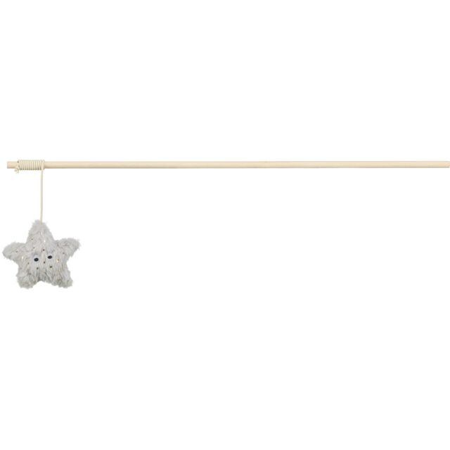 Vianočný hrací prút s hviezdičkou a catnipom, 48 cm, plyš/drevo, sivá