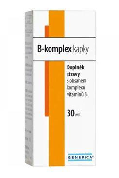 B-komplex Generica je doplněk stravy ve formě kapek, určený pro děti od 3 let. Sladkost kapek zajišťuje xylitol. Kapky jsou vhodné i pro diabetiky. Kapky mají příjemnou ovocnou příchuť. B-komplex kapky obsahují všech 8 esenciálních vitamínů skupiny B - vitaminy B1, B2, B6, B5, B3, B7, kyselinu listovou a vitamín B12.