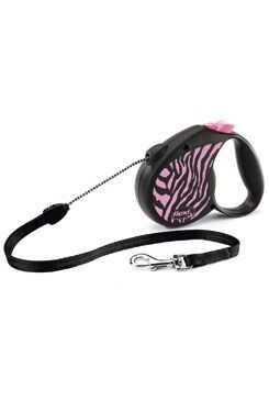 Vodítko FLEXI Safari zebra M lanko 5m/20kg růžová