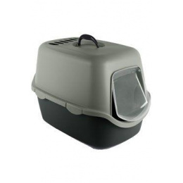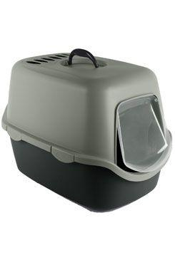 Krytá kočičí toaleta s filtrem a dvířky vyrobená z 50% recyklovaného plastu. Použití recykl. plastu snižuje dopad na životní prostředí o 19%.