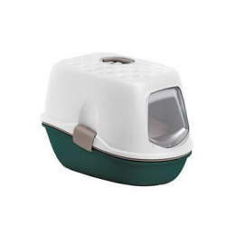 Inovativní a ekonomická krytá toaleta pro kočky. Toaleta se skládá z horního krytu s rukojetí a výklopnými dvířky a ze 2 podnosů a 1 vkládacího síta. Síto umožňuje oddělit nečistoty a opětovně použít čistou podestýlku (výměnou podnosů), čímž se zamezí jakémukoliv vysypávání steliva.