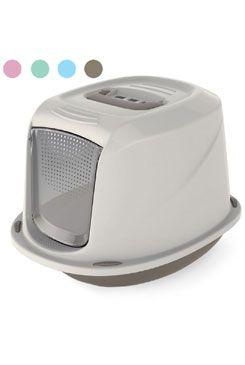 Krytá toaleta pro kočky s filtrem a madlem pro přenos.