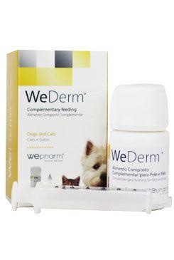 Výživový doplněk pro psy a kočky s vysokým obsahem esenciálních mastných kyselin, vitamínů a minerálů určených k podpoře kožní funkce v případech dermatózy, svědění, vypadávání chlupů nebo jakéhokoliv jiného dermatologického projevu alergie. WeDerm ® zaručuje synergický účinek s protizánětlivým účinkem, snižuje potřebu steroidů, snižuje zánět a svědění a zlepšuje bariérový účinek pokožky podporující posilování meziproduktových epidermálních ceramidových lipidových vrstev.