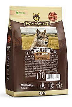 Vlci loví svou kořist od Skalistých hor Severní Ameriky, arktické tundry, hor a lesů Evropy až po pouště a stepi střední Asie. To jim dodává maso a vnitřnosti bohaté na živiny, ale také zeleninu, ovoce, bobule, kořeny a bylinky z obsahu žaludku kořisti. Obilí zde není zahrnuto. Vlk tak přijímá potřebné vitamíny, minerály, stopové prvky, enzymy a druhotné rostlinné látky. Vzhledem k tomu, že vlk je předkem všech psů, naše suché krmivo pro psy Wolfsblut je založeno na přirozených stravovacích návycích vlka. Obsahuje hodně masa nebo ryb v kombinaci se superpotravinami, které obsahují hodnotné ingredience – stejně jako v přírodě, bez obilovin. Náš výběr výjimečných druhů masa a superpotravin bohatých na živiny vychází z vlčích biotopů a jejich pestré stravy. Wolfsblut nabízí každému psovi druhově vhodnou a originální stravu a díky rozmanitosti odrůd si každý najde něco, co snese. Receptura suchého krmiva WIDE PLAIN ACTIVE kombinuje výživu vlků s nejnovějšími vědeckými poznatky o správné výživě psů.