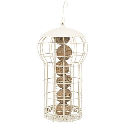 Zásobník na 6 ks lojových gúľ, s ochrannou mriežkou, ø 17 × 30 cm, lakovaný kov, krémová