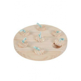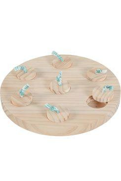 Dřevěný interaktivní zásobník na pamlsky pro králíky.