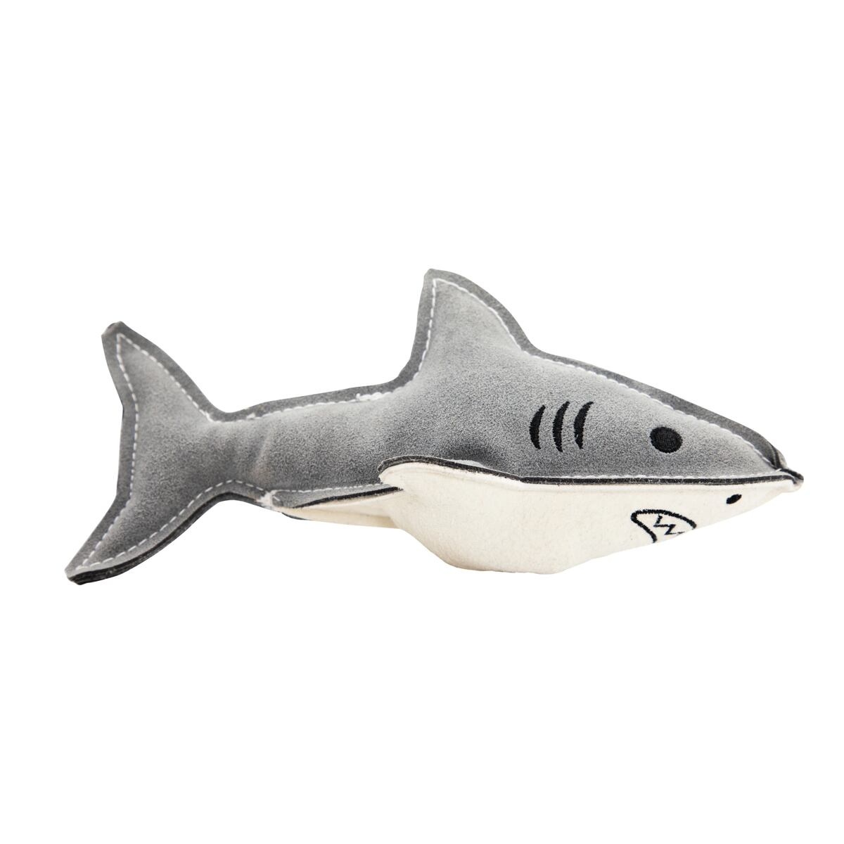 Žralok HipHop Dog, 23 cm, kožená robustná hračka, sivá/biela